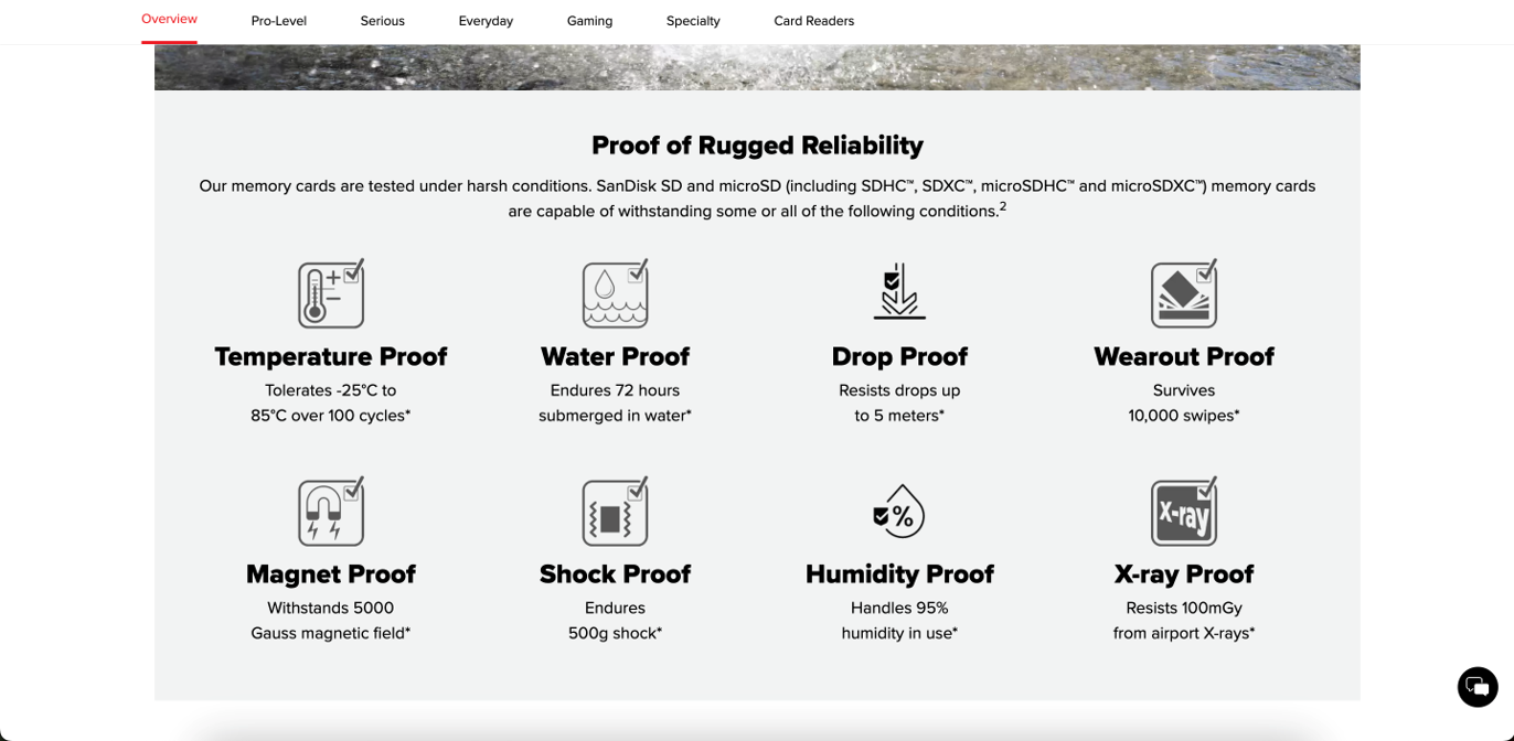 In this project I worked with the Product Marketing Manager SanDisk to put together a graphical layout to inform consumers of the 8 advantages of SD and microSD cards with revamped icons, text, and images to be used on the website and in slide decks.